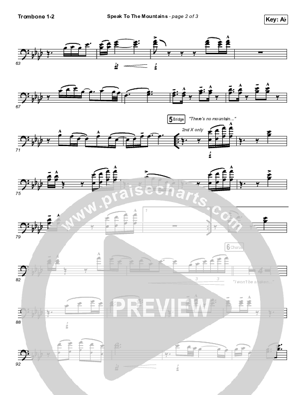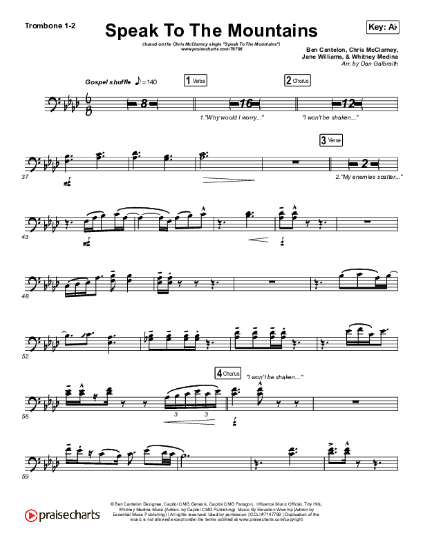 Download the Trombone 1,2 sheet music for Speak To The Mountains by Chris McClarney, from the album Speak To The Mountains - EP. This song was arranged by Daniel Galbraith in the key of Ab, G.