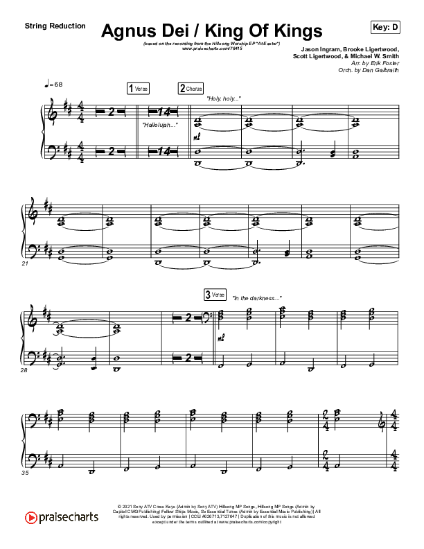Download the Orchestration for Agnus Dei / King Of Kings (Choral Anthem SATB) by Hillsong Worship / Arr. Luke Gambill, from the album At Easter. This song was arranged by Luke Gambill / Daniel Galbraith in the key of D.