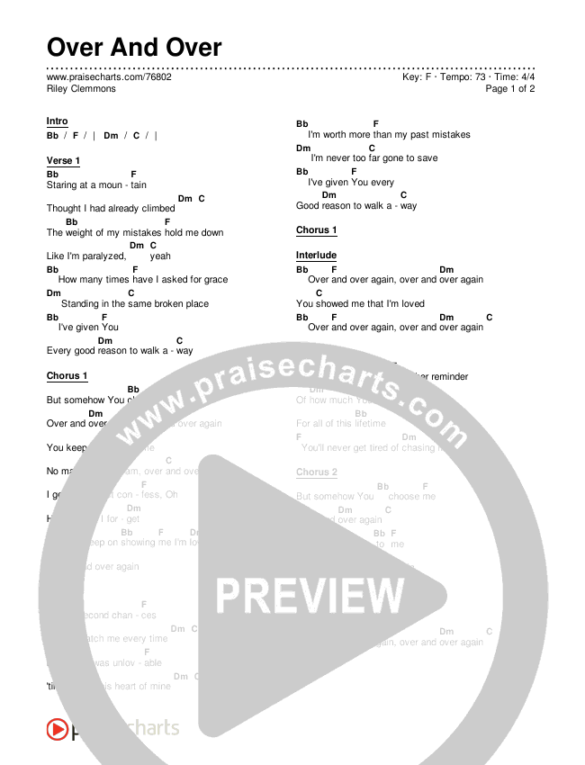 Download the PDF Chord Charts for Over And Over by Riley Clemmons, from the album Over And Over - Single.