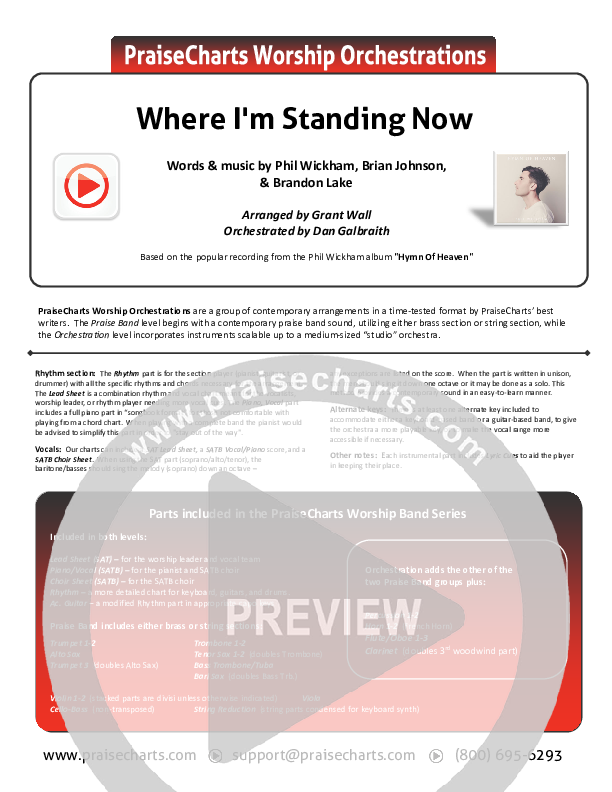 Download the Orchestration for Where I'm Standing Now by Phil Wickham / Brandon Lake, from the album Hymn Of Heaven. This song was arranged by Grant Wall in the key of Ab, G.