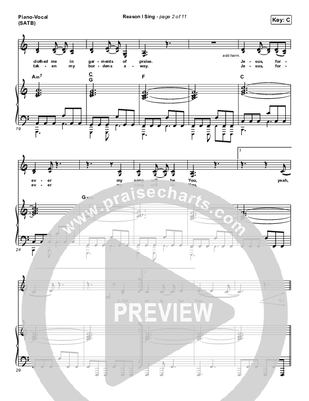 Download the sheet music for Reason I Sing by Phil Wickham, from the album Hymn Of Heaven. This song was arranged by Grant Wall / Daniel Galbraith in the key of C, D.