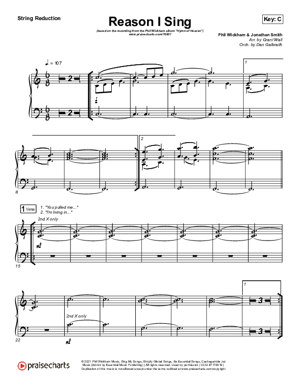 Download the Orchestration for Reason I Sing by Phil Wickham, from the album Hymn Of Heaven. This song was arranged by Grant Wall / Daniel Galbraith in the key of C, D.