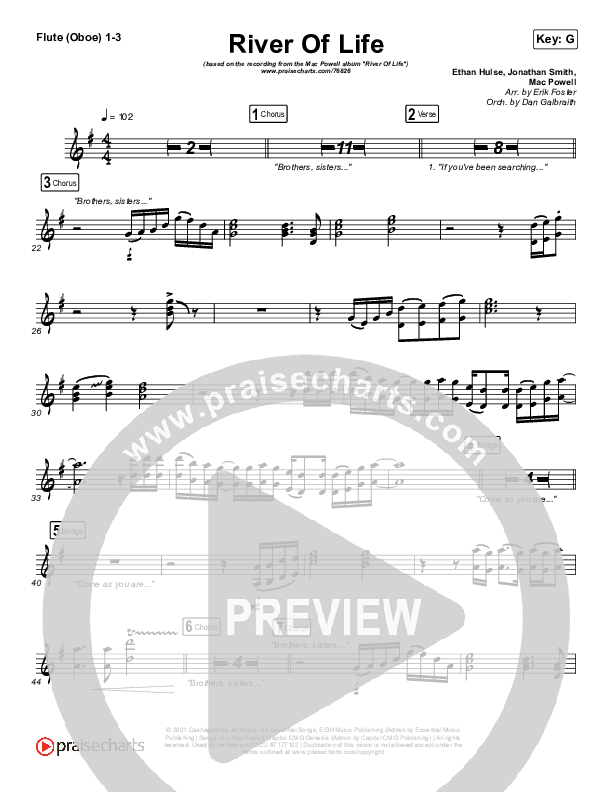 Download the Orchestration wind parts for River Of Life by Mac Powell, from the album New Creation. This song was arranged by Erik Foster / Daniel Galbraith in the key of Ab, G.