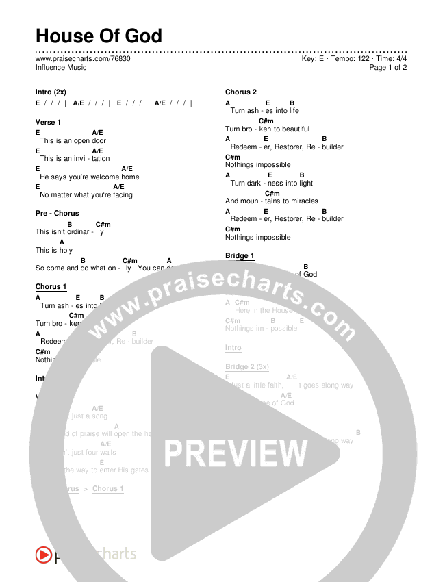 Download the PDF Chord Charts for House Of God by Influence Music, from the album Ages (Deluxe).