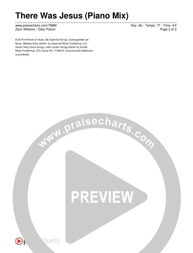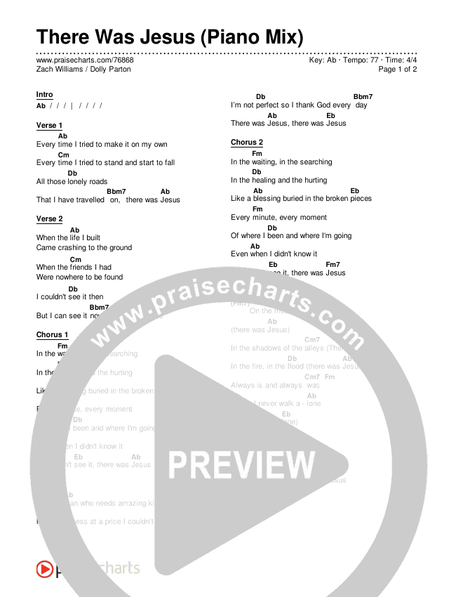 There Was Jesus (Piano Mix) Chords PDF (Zach Williams / Dolly Parton)
