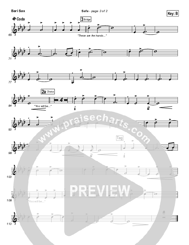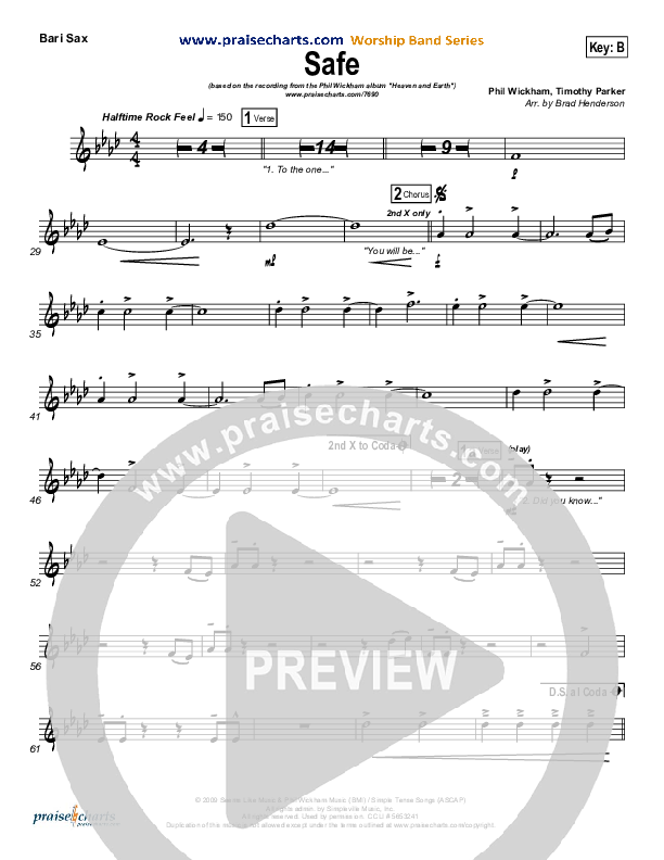 Download the Bari Sax sheet music for Safe by Phil Wickham, from the album Heaven and Earth. This song was arranged by Brad Henderson in the key of A, B.