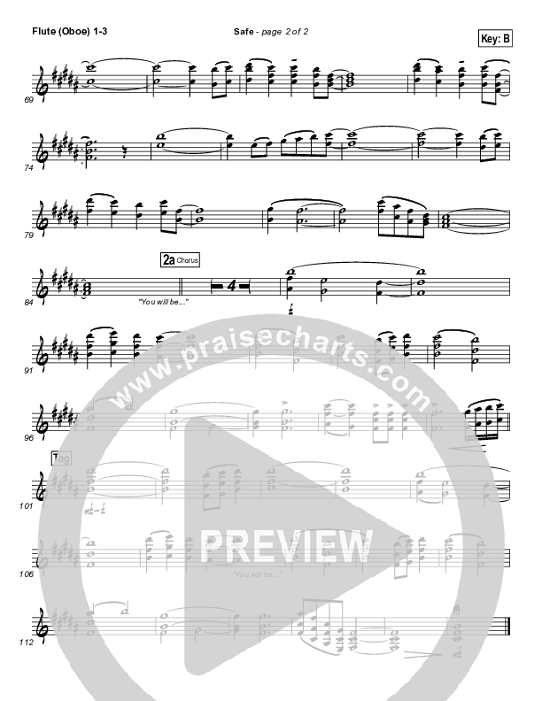 Download the Flute/Oboe sheet music for Safe by Phil Wickham, from the album Heaven and Earth. This song was arranged by Brad Henderson in the key of A, B.