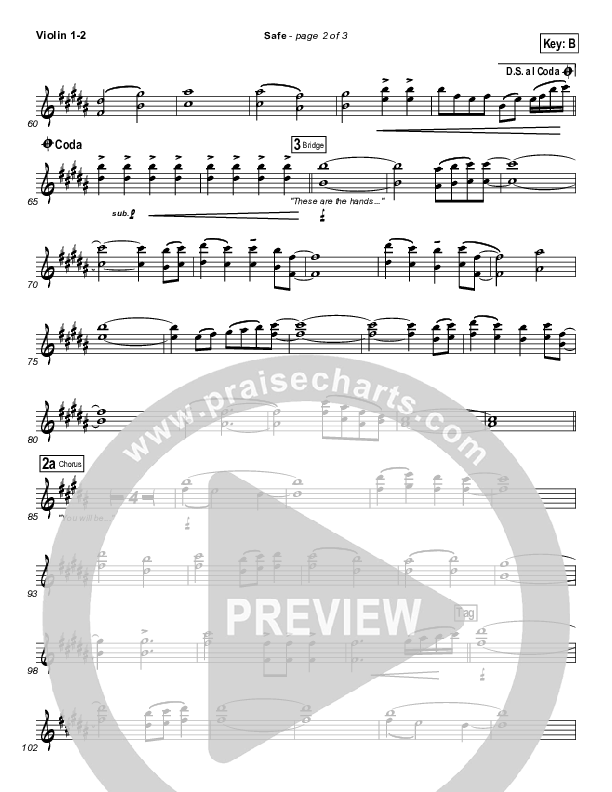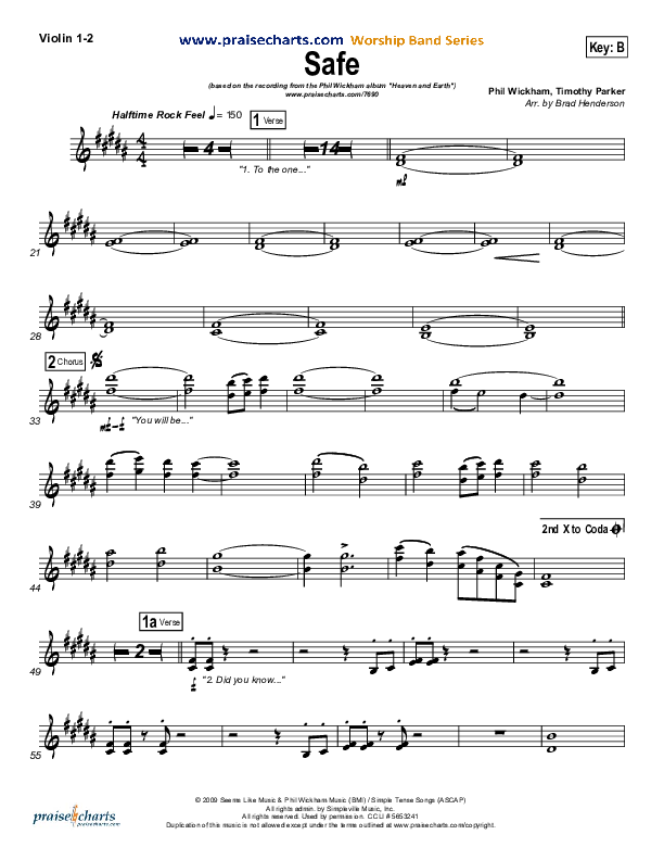 Download the Violin sheet music for Safe by Phil Wickham, from the album Heaven and Earth. This song was arranged by Brad Henderson in the key of A, B.
