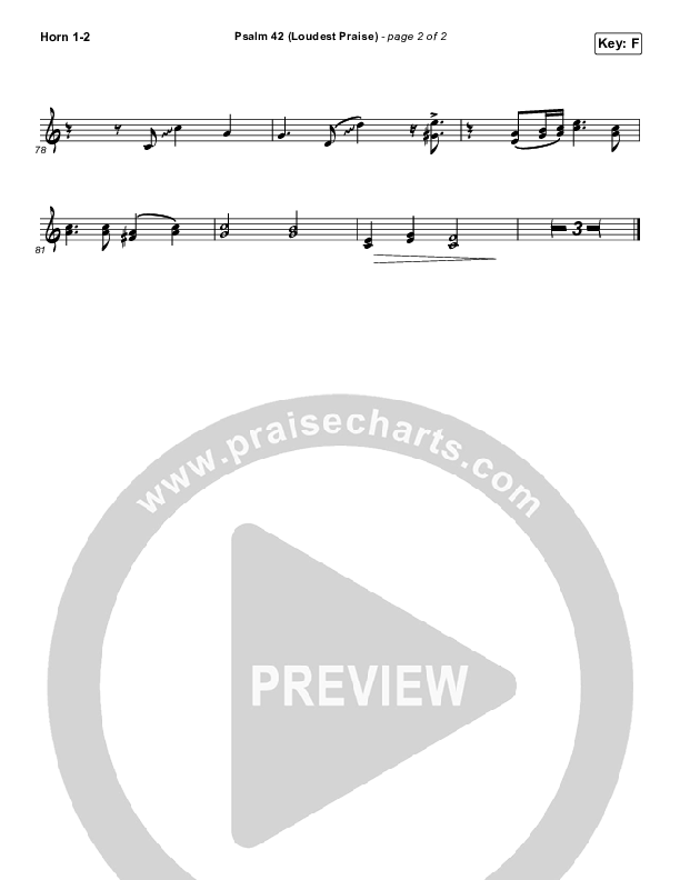 Download the French Horn sheet music for Psalm 42 (Loudest Praise) by The Worship Initiative / Shane & Shane, from the album Psalms Hymns And Spiritual Songs Vol 1. This song was arranged by Daniel Galbraith in the key of E, F.