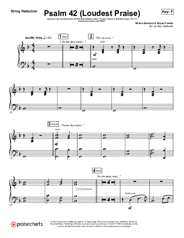 Download the Orchestration for Psalm 42 (Loudest Praise) by The Worship Initiative / Shane & Shane, from the album Psalms Hymns And Spiritual Songs Vol 1. This song was arranged by Daniel Galbraith in the key of E, F.