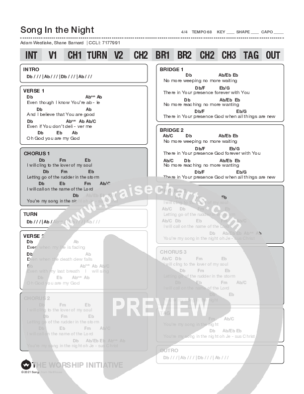 Song In The Night Chord Chart (The Worship Initiative / Shane & Shane)