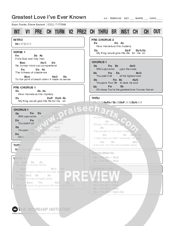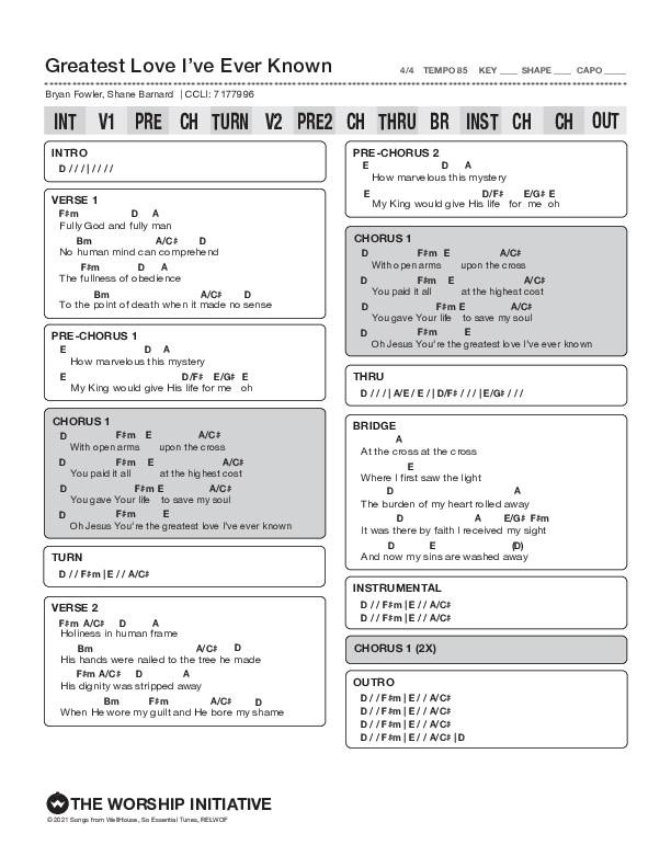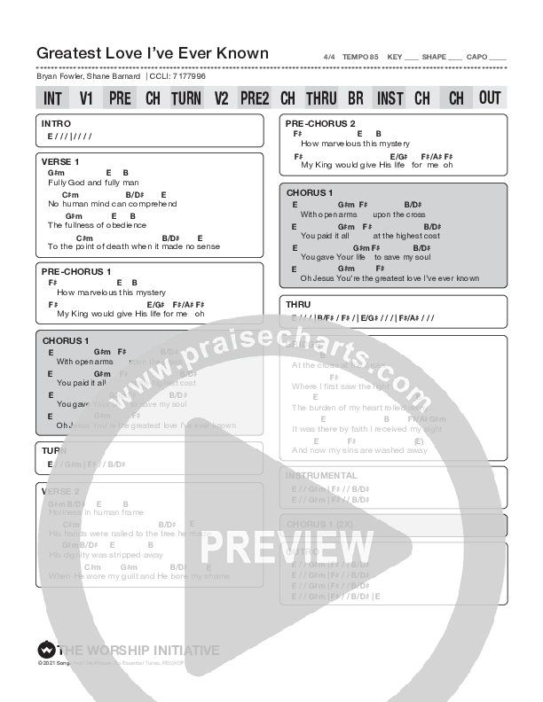 Greatest Love I’ve Ever Known Chords PDF (The Worship Initiative / Shane & Shane)