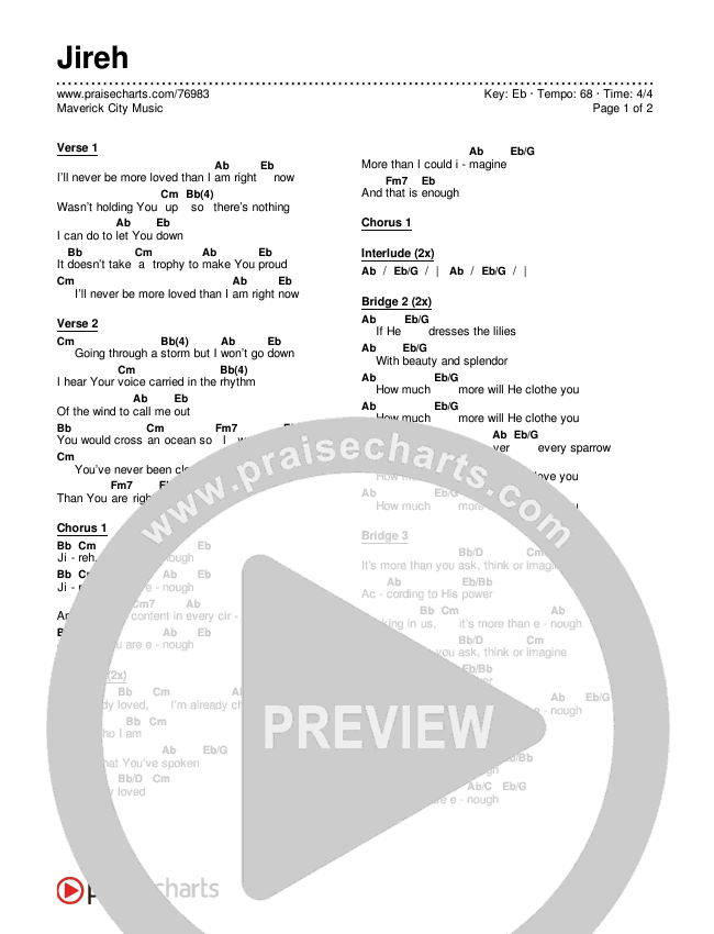 Jireh Chords PDF (Maverick City Music)