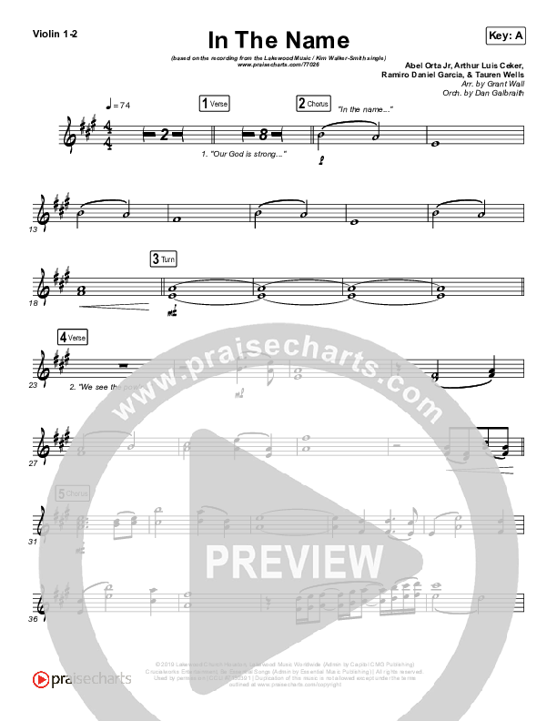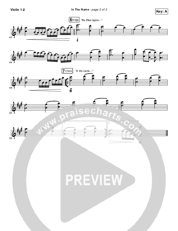 Download the Violin sheet music for In The Name by Lakewood Music / Kim Walker-Smith, from the album Whatever May Come. This song was arranged by Grant Wall / Daniel Galbraith in the key of A, Ab.