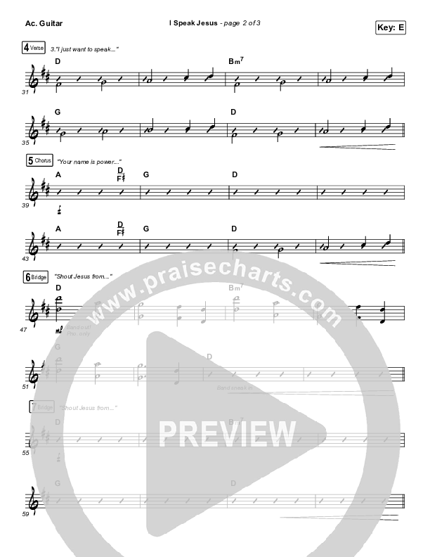 Download the Acoustic Guitar sheet music for I Speak Jesus by Charity Gayle, from the album I Speak Jesus. This song was arranged by Daniel Galbraith in the key of E, F.