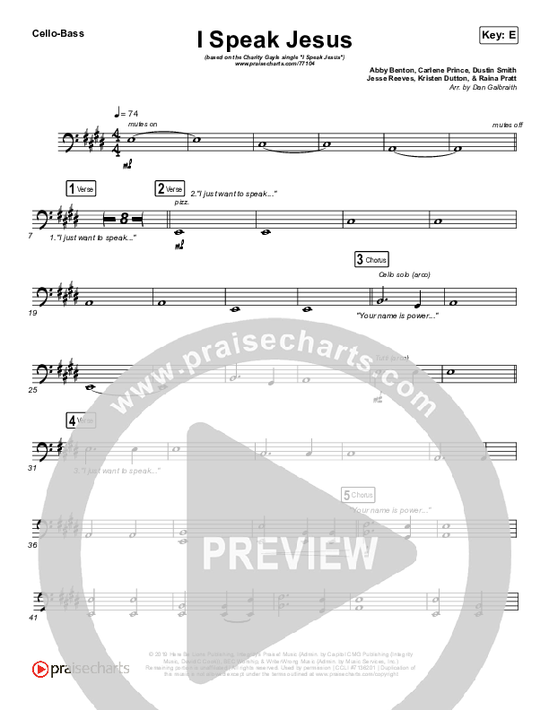Download the Orchestration for I Speak Jesus by Charity Gayle, from the album I Speak Jesus. This song was arranged by Daniel Galbraith in the key of E, F.