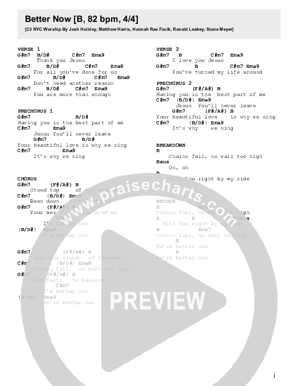 Download the PDF Chord Charts for Better Now by FOUNT, from the album Warehouse Sessions.
