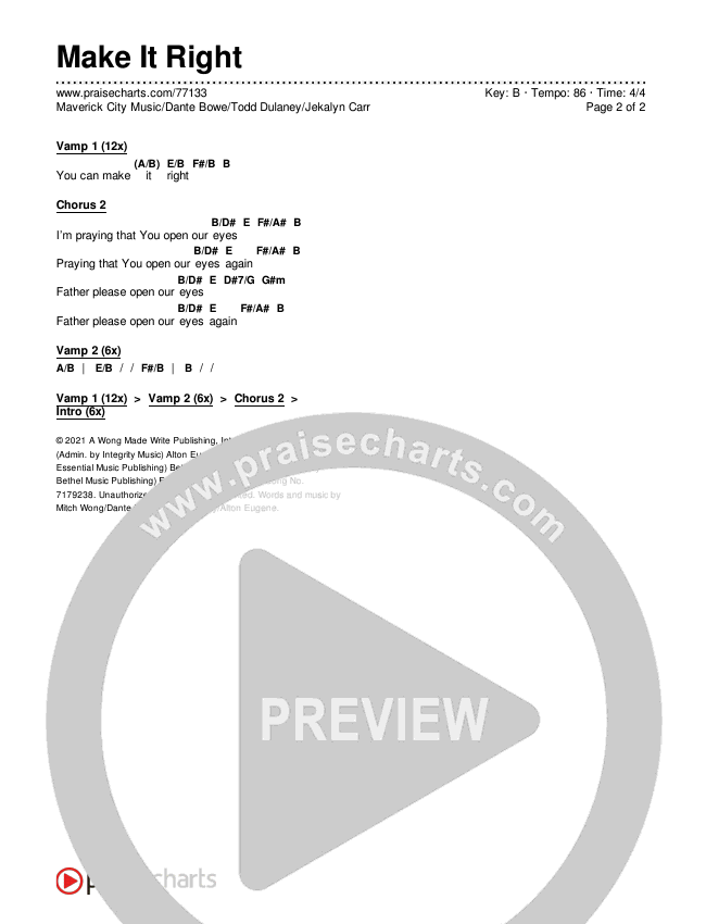 Make It Right Chords PDF (Maverick City Music / Dante Bowe / Todd Dulaney / Jekalyn Carr)