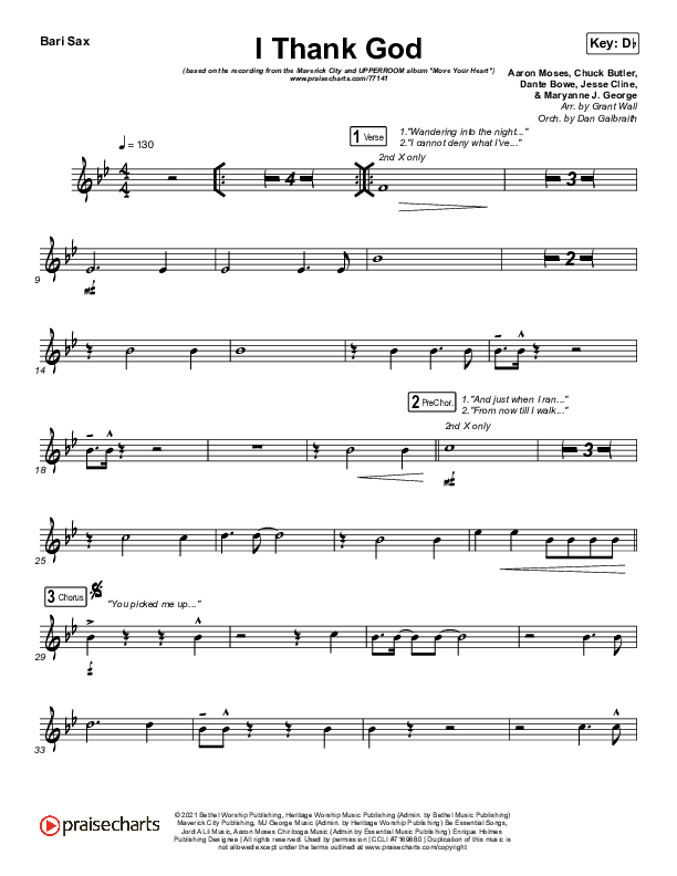 I Thank God Bari Sax Sheet Music PDF (Maverick City Music / Dante Bowe / Aaron Moses / Maryanne J. George / Chuck Butler)