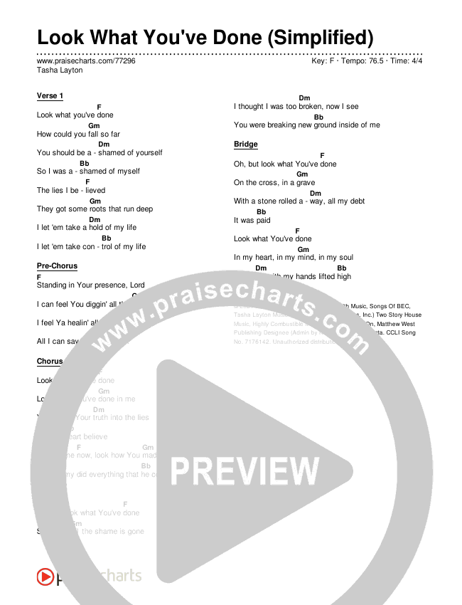 Look What You've Done (Simplified) Chords PDF (Tasha Layton)