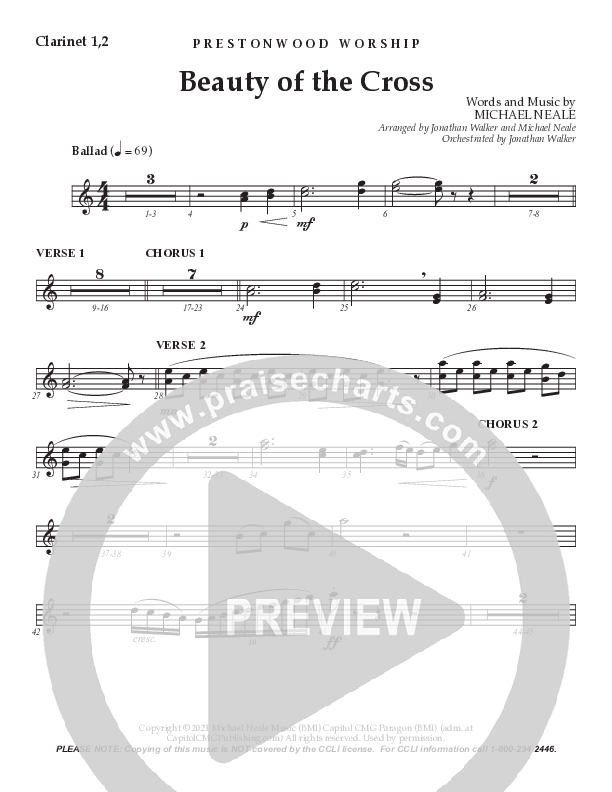 Download the Clarinet sheet music for Beauty Of The Cross (Choral Anthem SATB) by Prestonwood Worship / Prestonwood Choir / Arr. Jonathan Walker, from the album Not To Us. This song was arranged by Jonathan Walker / Michael Neale in the key of Bb.