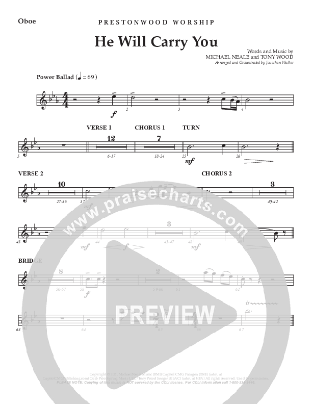 Download the Oboe sheet music for He Will Carry You (Choral Anthem SATB) by Prestonwood Worship / Prestonwood Choir / Arr. Jonathan Walker, from the album Not To Us. This song was arranged by Jonathan Walker in the key of Eb.