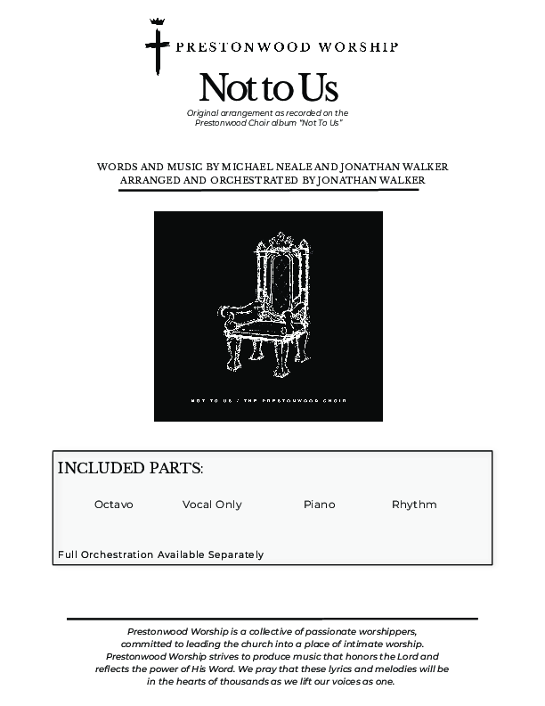 Not To Us (Choral Anthem SATB) Choral Sheet Music PDF (Prestonwood Worship / Prestonwood Choir / Arr. Jonathan Walker)
