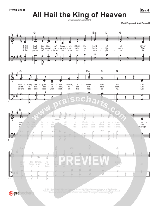All Hail The King Of Heaven Hymn Sheet (Matt Papa / Matt Boswell)