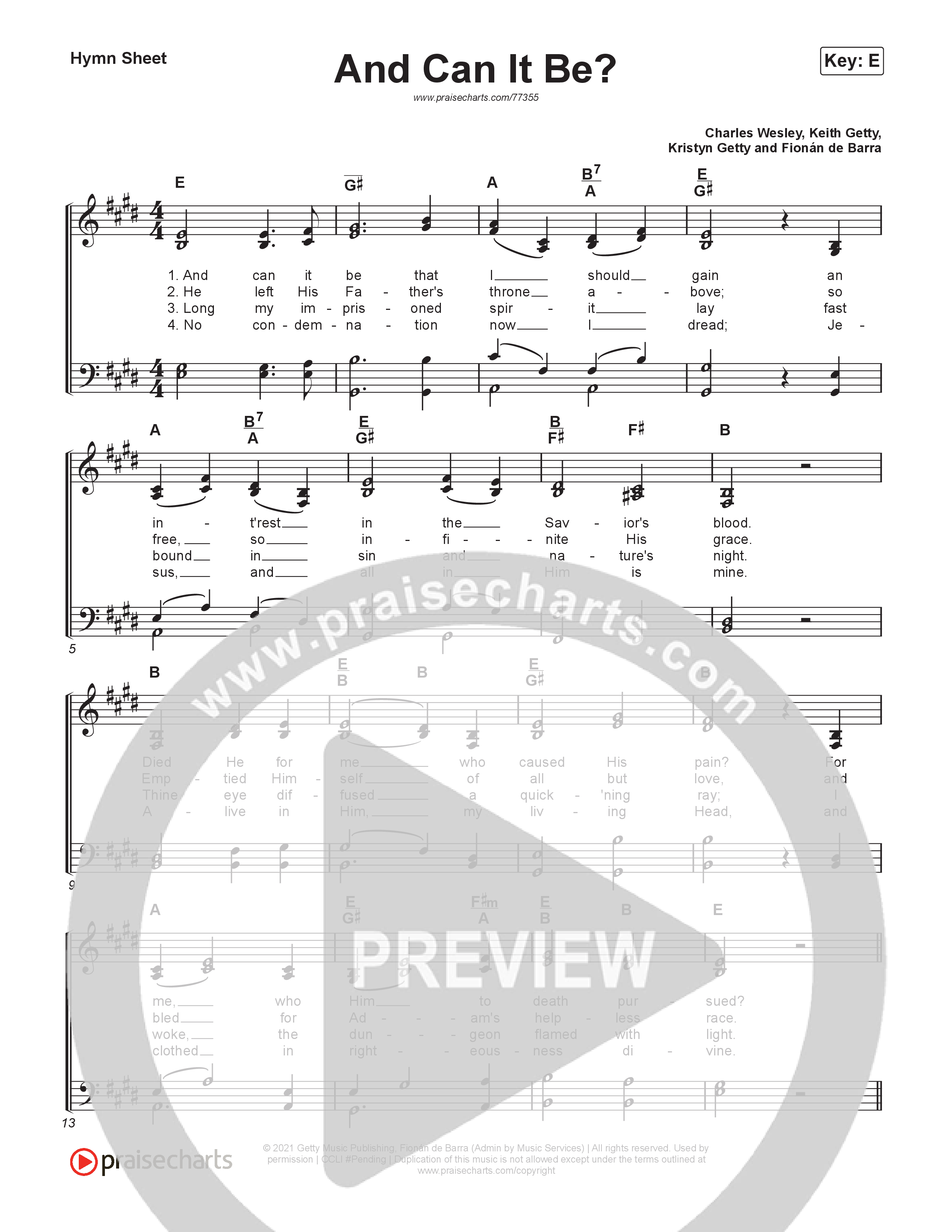 And Can It Be? Hymn Sheet (Keith & Kristyn Getty)