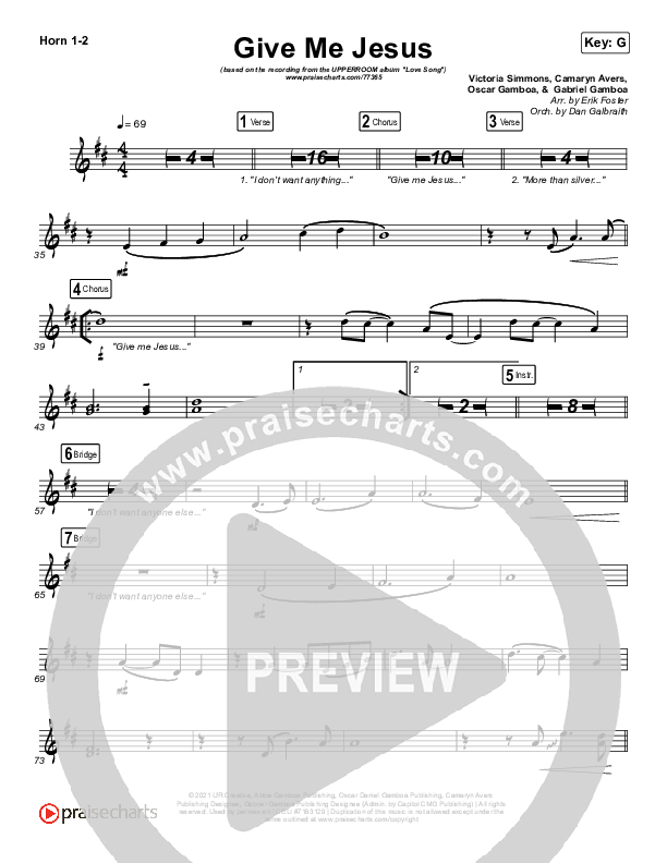 Download the Orchestration brass parts for Give Me Jesus by UPPERROOM / Abbie Gamboa, from the album Love Note. This song was arranged by Erik Foster / Daniel Galbraith in the key of Ab, G.