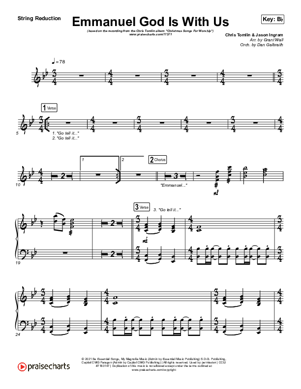 Download the Orchestration for Emmanuel God With Us (Live) by Chris Tomlin, from the album Emmanuel: Christmas Songs Of Worship. This song was arranged by Grant Wall / Daniel Galbraith in the key of Bb, C.