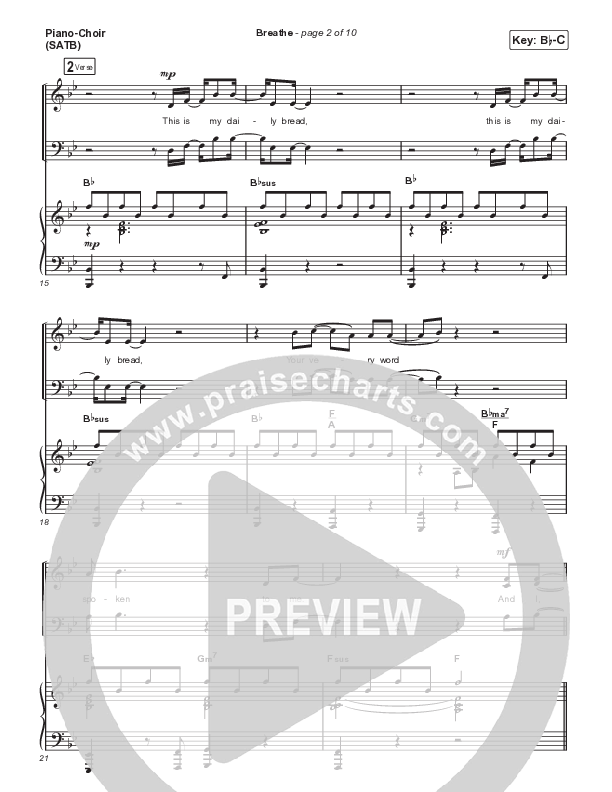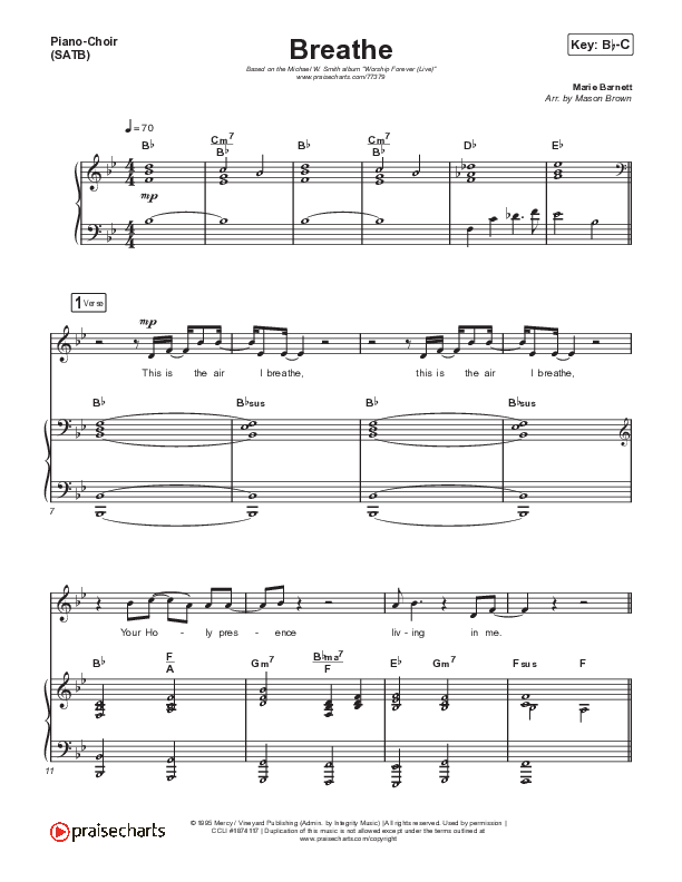 Download the PDF sheet music for Breathe (Live) by Michael W. Smith, from the album Worship Forever. This song was arranged by Mason Brown in the key of Ab, Bb.