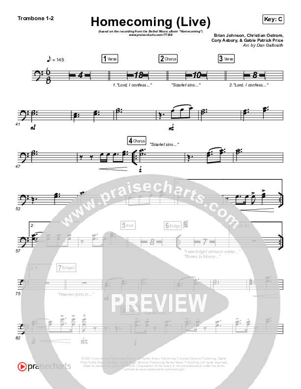 Homecoming (Live) Trombone Sheet Music PDF (Bethel Music / Cory Asbury / Gable Price)