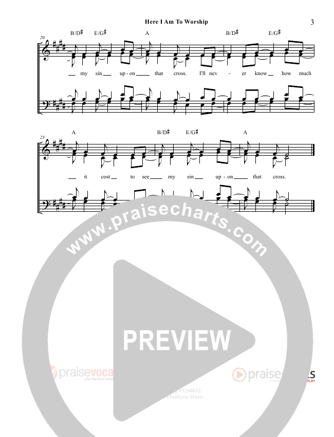 Here I Am To Worship Sheet Music PDF (PraiseVocals)