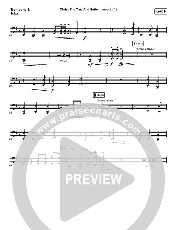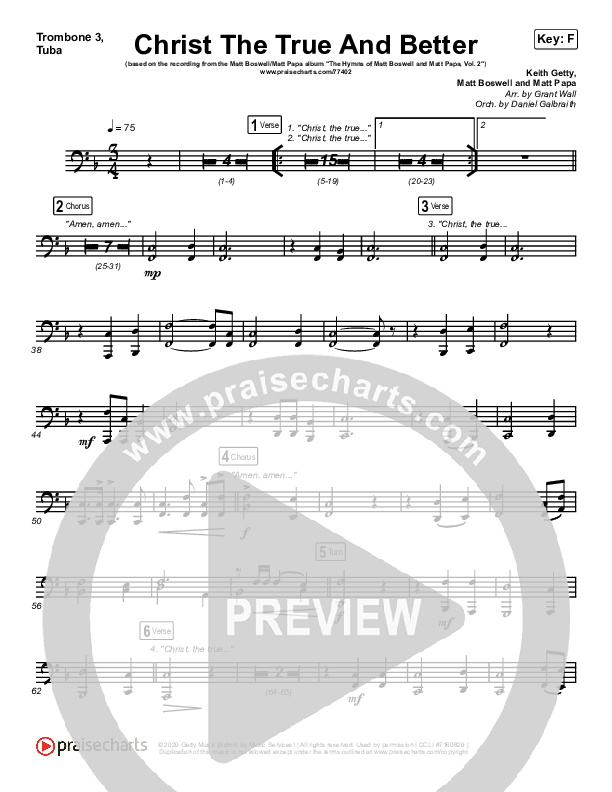 Download the Trombone 3/Tuba sheet music for Christ The True And Better by Matt Boswell / Matt Papa, from the album Almost Home - The Hymns Of Matt Boswell And Matt Papa Vol 2. This song was arranged by Grant Wall / Daniel Galbraith in the key of E, F.