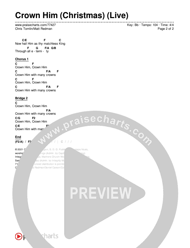 Crown Him (Christmas) (Live) Chords PDF (Chris Tomlin / Matt Redman)