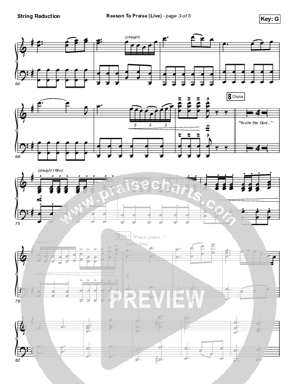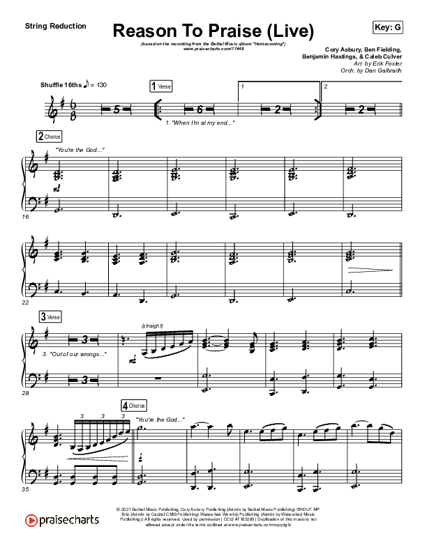 Download the String Reduction sheet music for Reason To Praise (Live) by Bethel Music / Cory Asbury / Naomi Raine, from the album Homecoming. This song was arranged by Erik Foster / Daniel Galbraith in the key of Ab, G.
