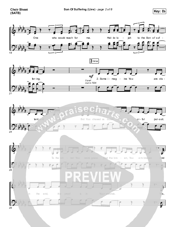 Download the Choir Sheet for Son Of Suffering (Live) by Bethel Music / David Funk / Matt Redman, from the album Homecoming. This song was arranged by Erik Foster / Daniel Galbraith in the key of Bb, C, Db.