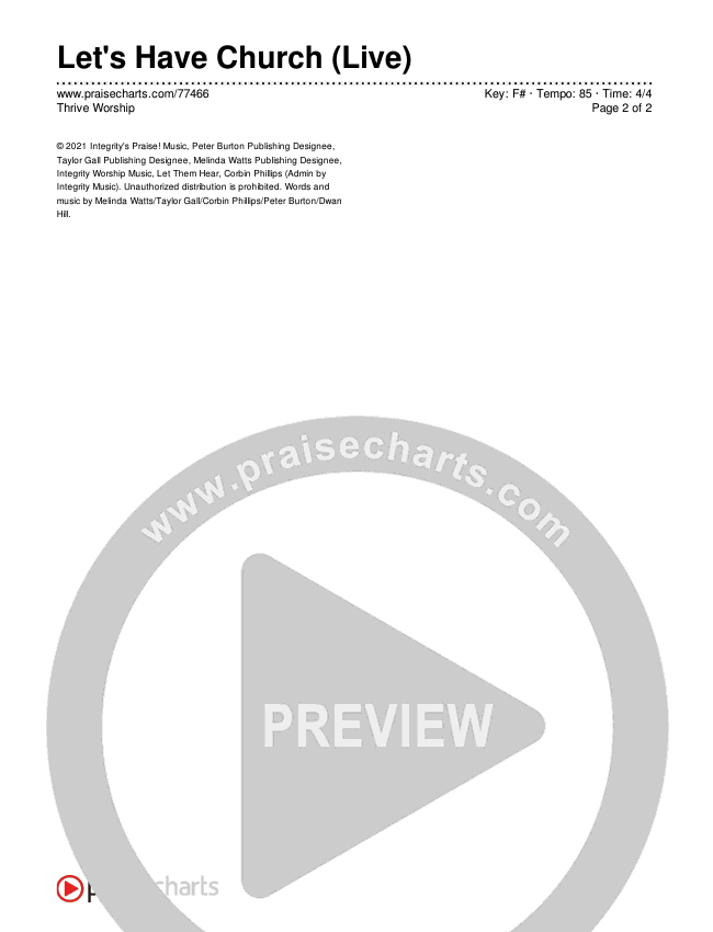 Download the PDF Chord Charts for Let's Have Church (Live) by Thrive Worship, from the album Let's Have Church.