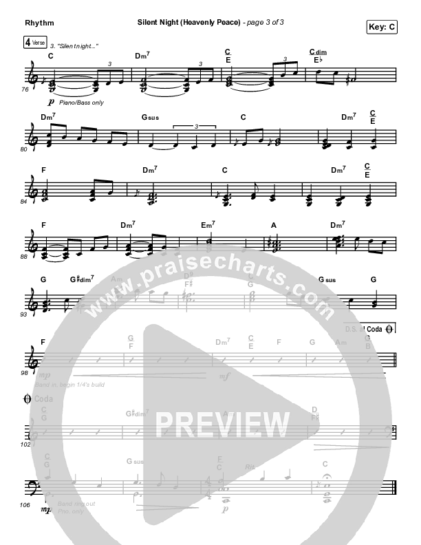 Download the Rhythm Chart for Silent Night (Heavenly Peace) by We The Kingdom / Dante Bowe / Maverick City Music, from the album A Family Christmas. This song was arranged by Erik Foster / Daniel Galbraith in the key of Bb, C.