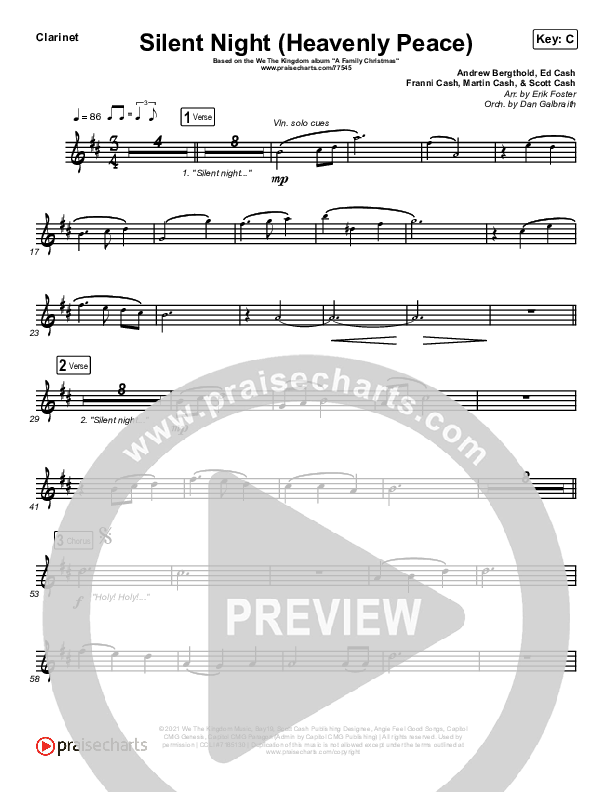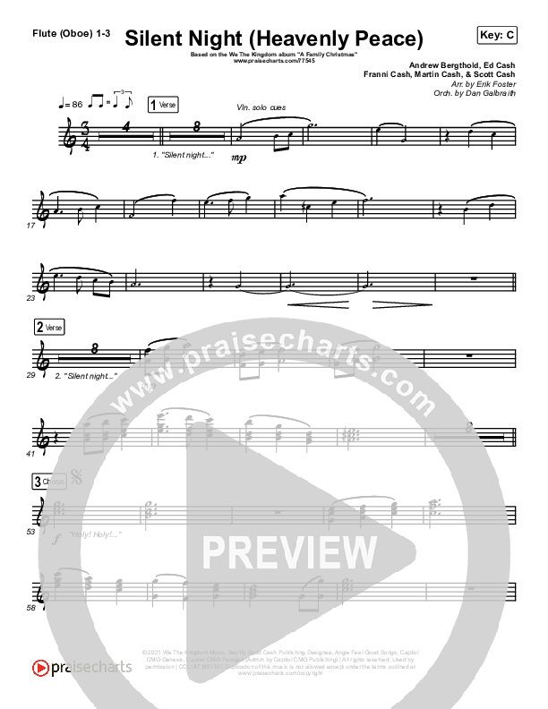 Download the Orchestration wind parts for Silent Night (Heavenly Peace) by We The Kingdom / Dante Bowe / Maverick City Music, from the album A Family Christmas. This song was arranged by Erik Foster / Daniel Galbraith in the key of Bb, C.