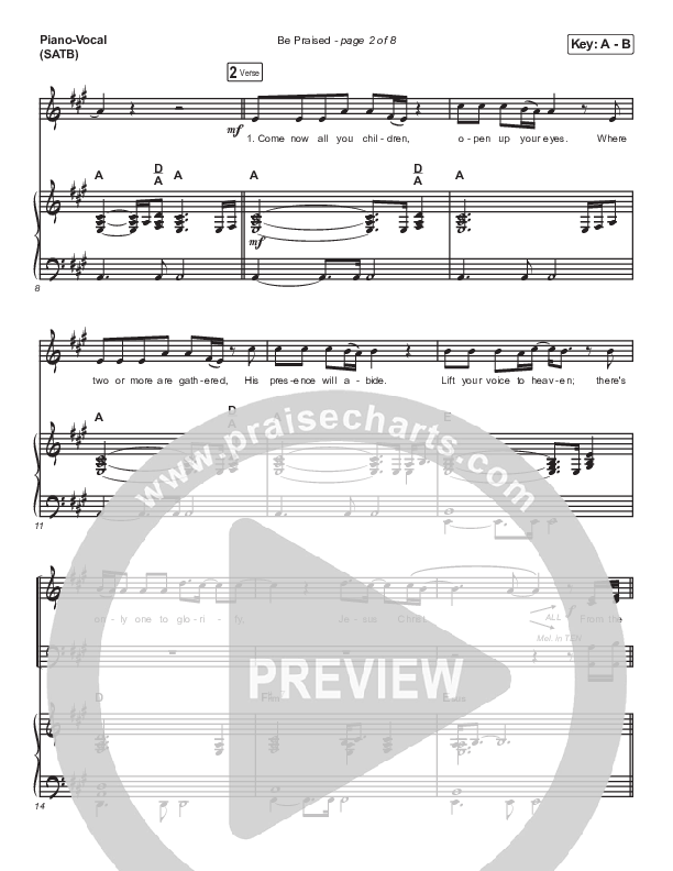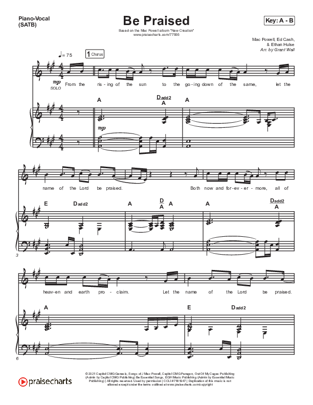Download the sheet music for Be Praised by Mac Powell, from the album New Creation. This song was arranged by Grant Wall in the key of A, Ab.