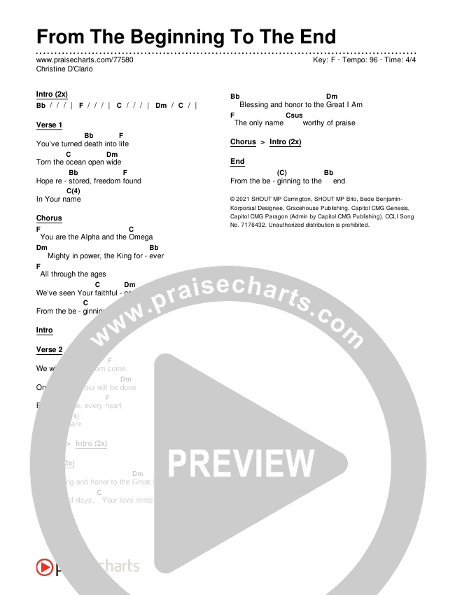From The Beginning To The End Chords PDF (Christine D'Clario)