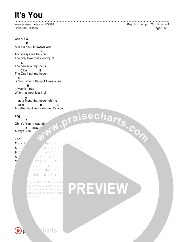 It's You Chords PDF (Christine D'Clario)