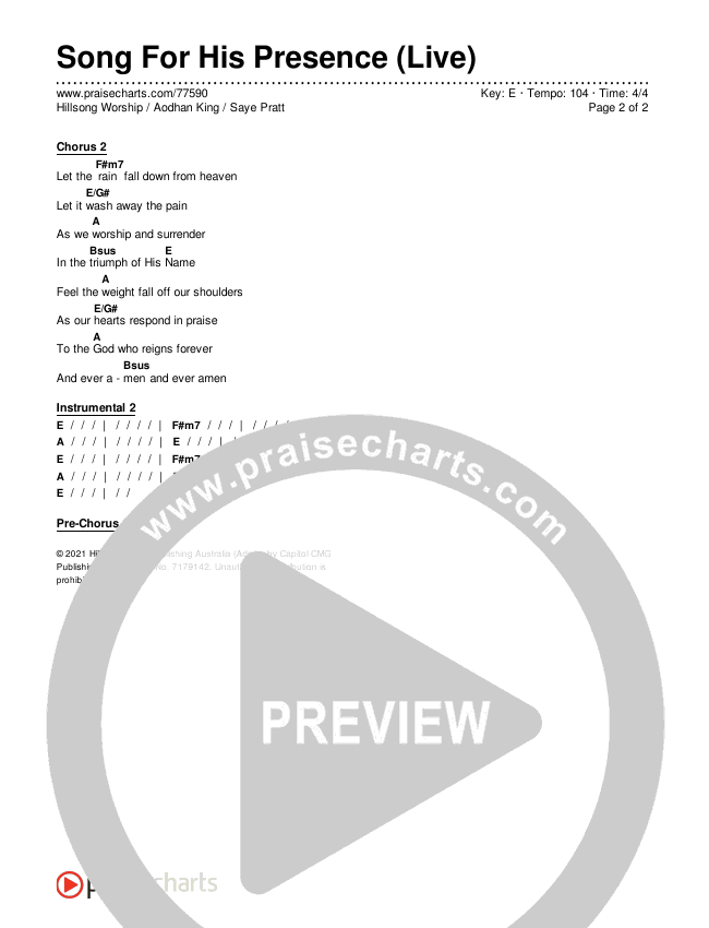 Song For His Presence (Live) Chords PDF (Hillsong Worship / Aodhan King / Saye Pratt)
