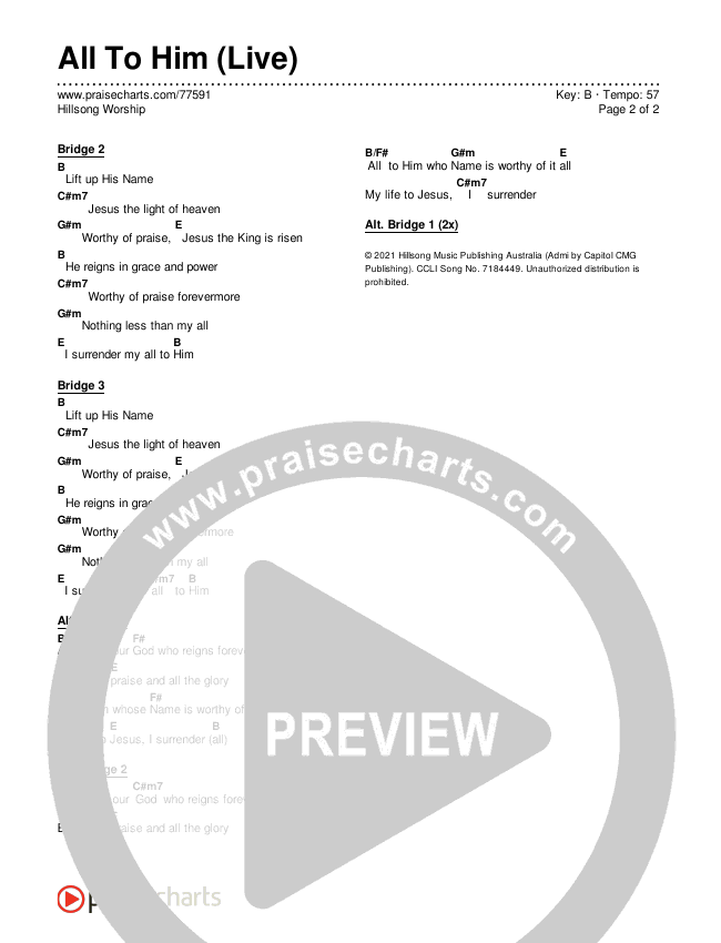 All To Him (Live) Chords & Lyrics (Hillsong Worship)