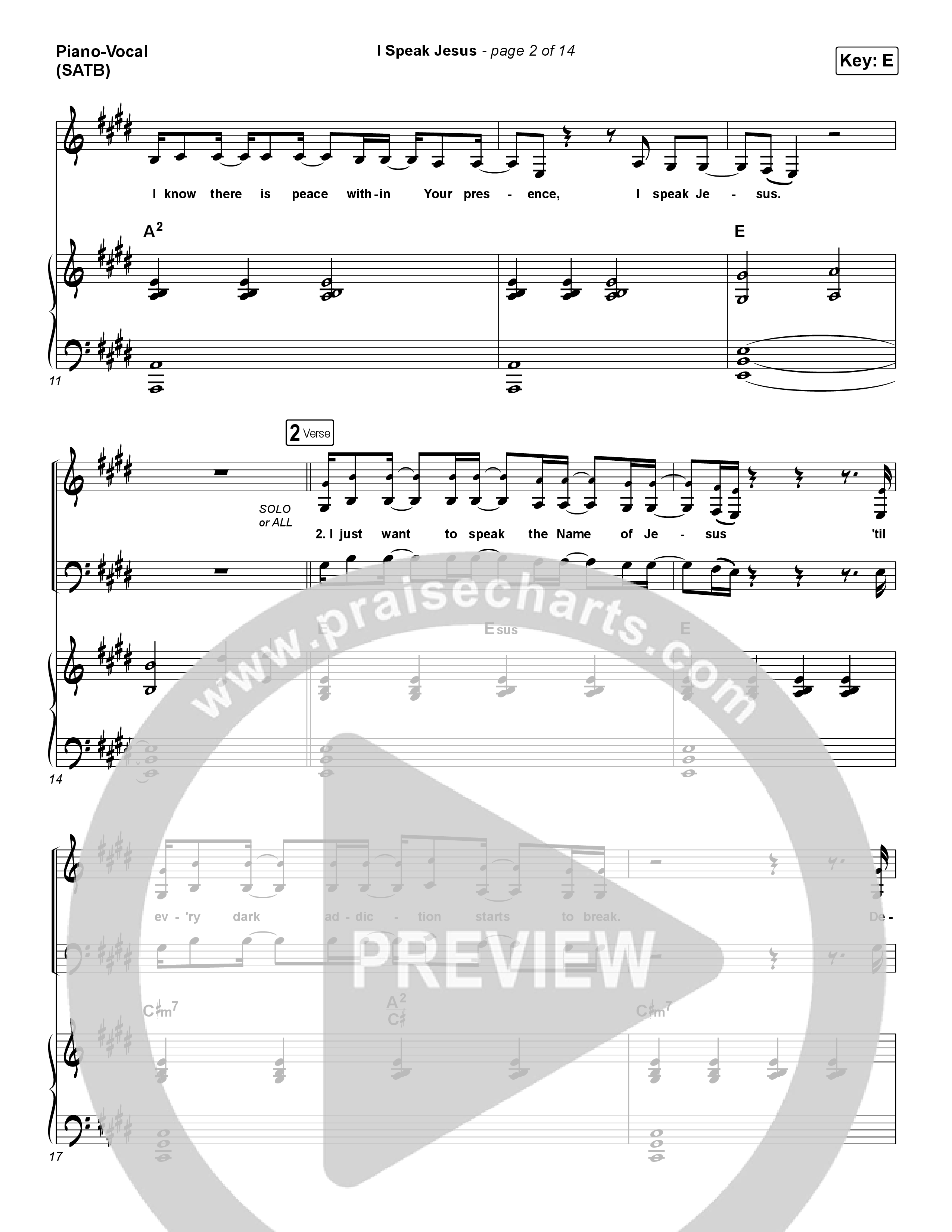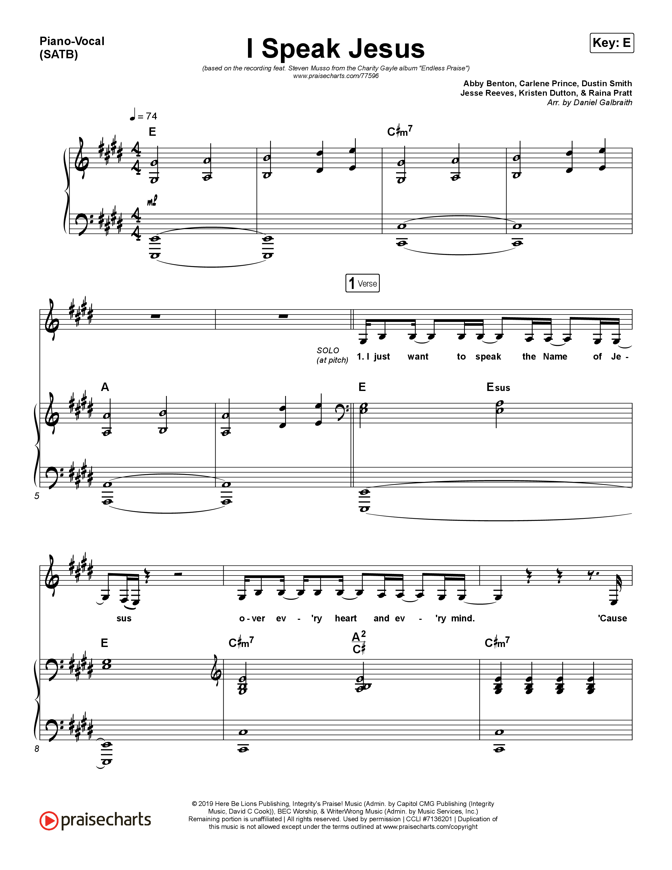 Download the sheet music for I Speak Jesus by Charity Gayle / Steven Musso, from the album Endless Praise. This song was arranged by Daniel Galbraith in the key of D, E, Eb, F, Gb.