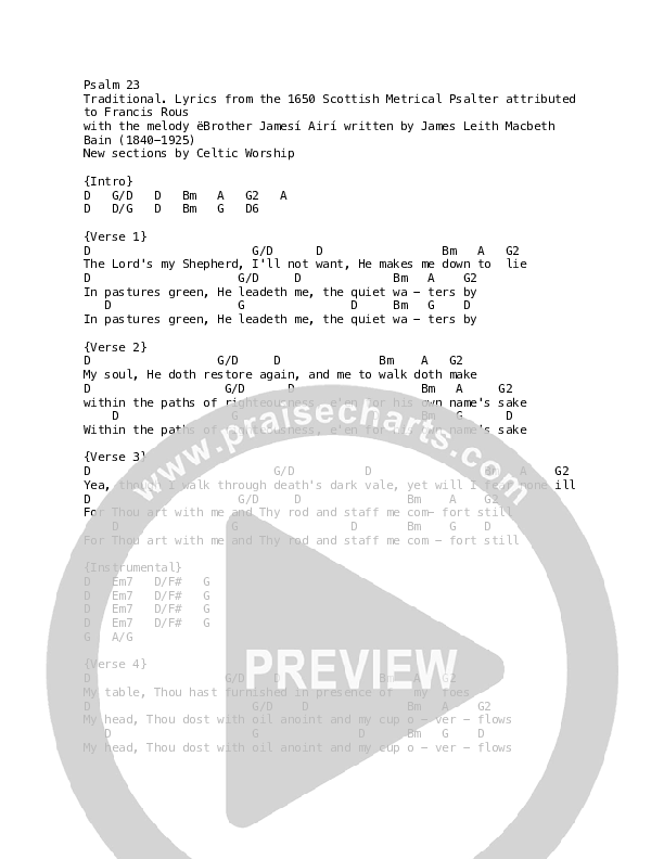 Download the PDF Chord Charts for Psalm 23 by Celtic Worship, from the album Morningtide.