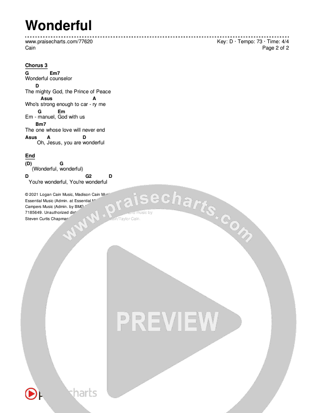 Wonderful Chords PDF (CAIN)