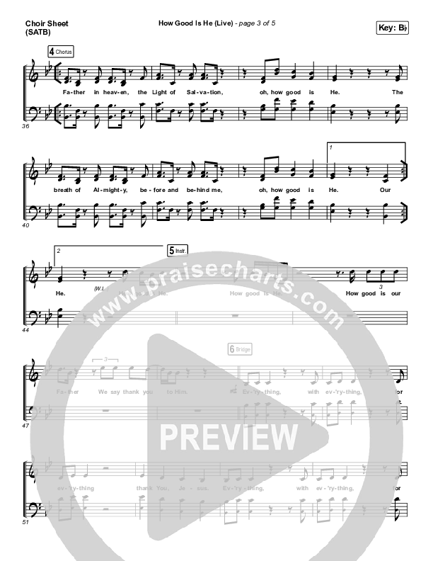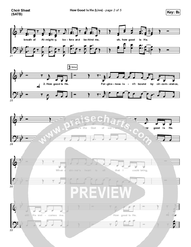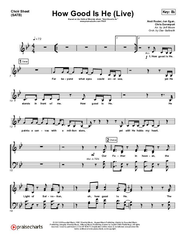 Download the Choir Sheet for How Good Is He (Live) by Vertical Worship, from the album How Good Is He. This song was arranged by Jeff Moore / Daniel Galbraith in the key of A, Bb.